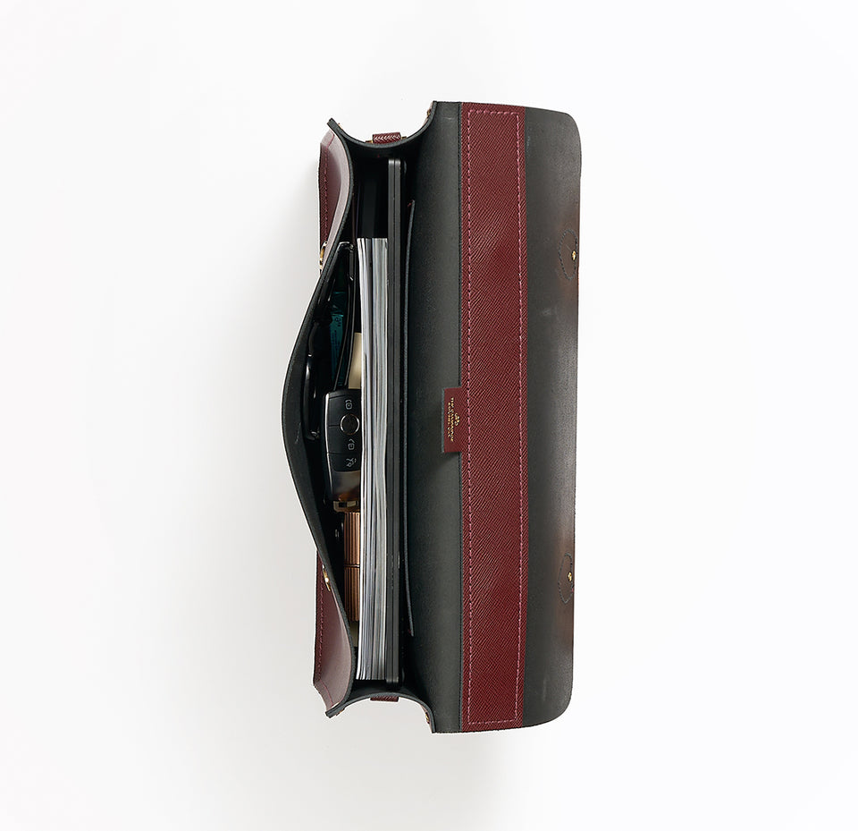 The Briefcase is one of our larger bags, making it an ideal companion in your career. Its central chamber has plenty of room to carry slim A4 folders, lightweight laptops and the rest of your professional paraphernalia. Meanwhile, its discreet inner pocket helps keep you organised. Typically carried by its reinforced top handle, The Briefcase can also be worn over the shoulder using the detachable, adjustable shoulder strap. Made in England from our flawless signature leather, we have embossed our logo on its reverse and on its brass hardware. The Briefcase's convenient magnetic closures makes an 'open and shut case' even faster. We've supplied a protective dust bag to keep your briefcase correctly when you're off on holiday or taking a well deserved career break.